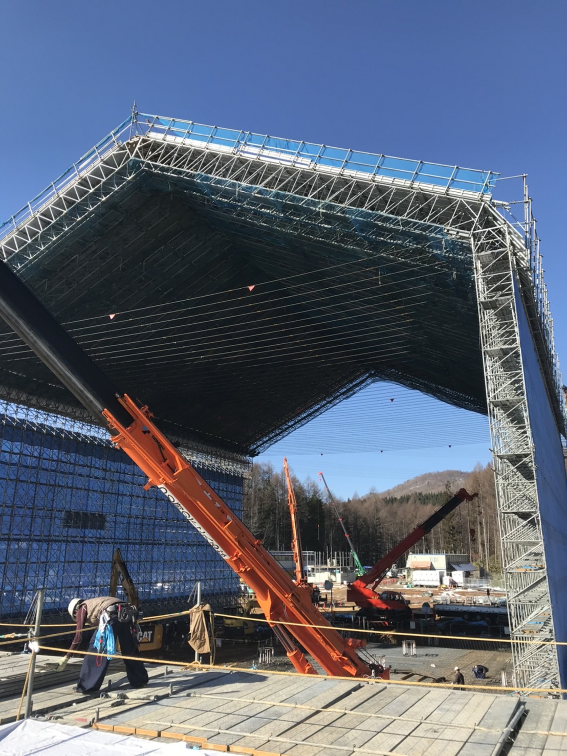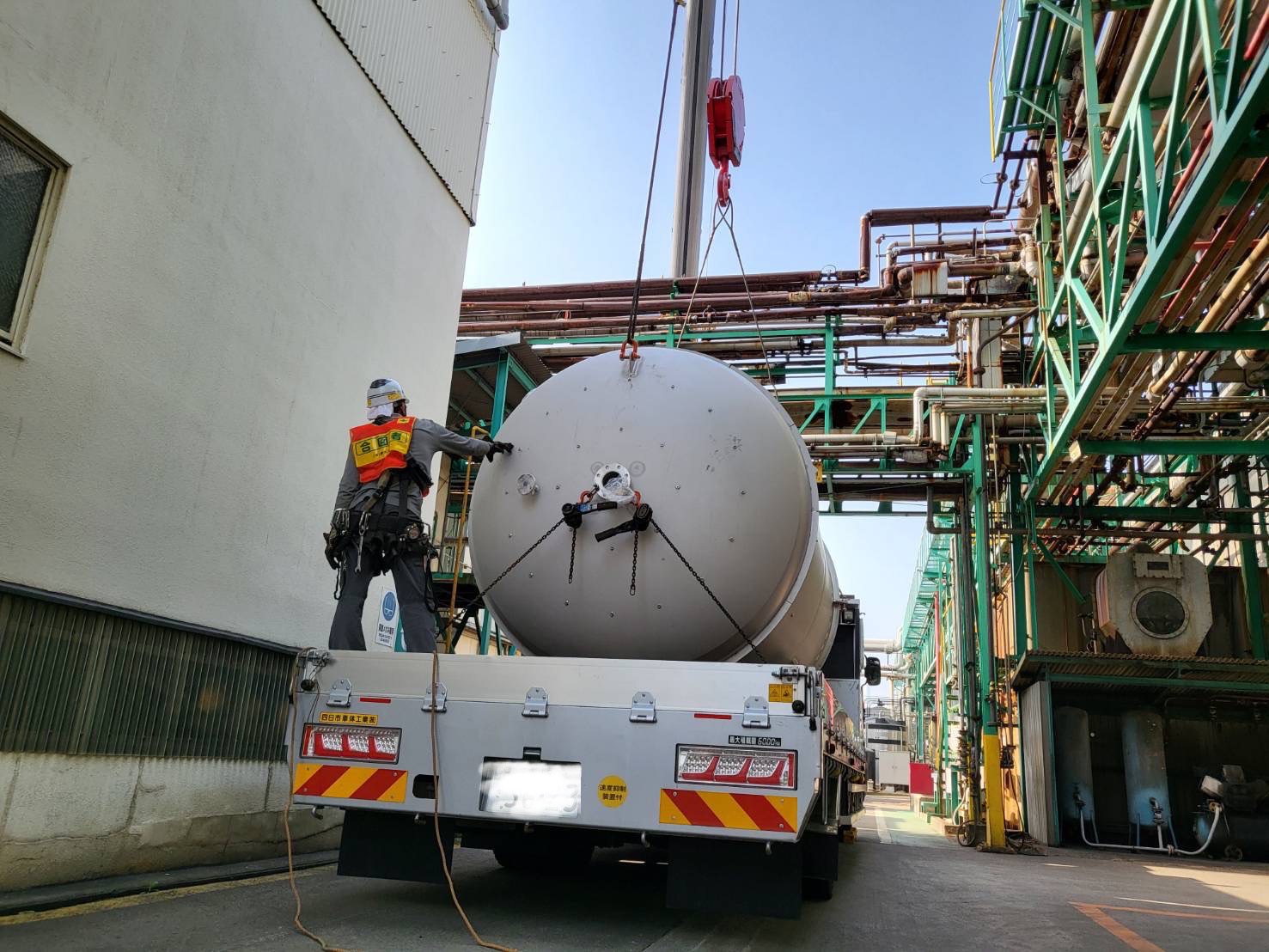 プラント工事で必要になるものが足場です。高所でも職人が安全かつ効率良く作業をするために、工事をする設備や建物を仮設足場で取り囲みます。